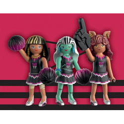 Entra no espírito monstruoso com a Fear Squad da PLAYMOBIL Monster High! Junta-te à Clawdeen, à Cleo e à Frankie enquanto espalham movimentos arrepiantes e uma energia de arrepiar em cada coreografia. Com membros removíveis e peças intercambiáveis, estas adolescentes articuladas da PLAYMOBIL são assustadoramente flexíveis para infinitas rotinas. Pompons, faixas e muito estilo completam o set — perfeito para brincadeiras cheias de imaginação ou para exibir na tua coleção! Seja a dar vida ao espírito escolar ou a preparar-se para o pavilhão desportivo de Monster High, este trio está pronto para liderar a equipa dos gritos